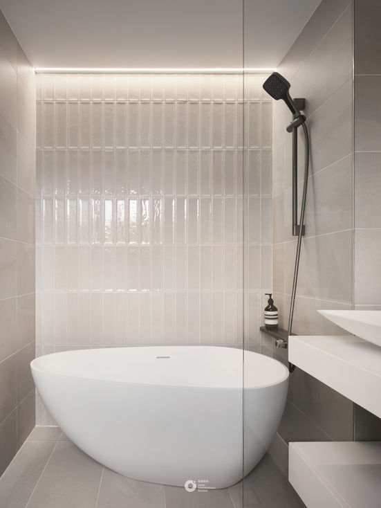 電視牆上的壁爐,這不僅僅是功能性的設置,更是空間的靈魂所在。在一片純白之中,壁爐的火光為整個空間注入了溫暖的心跳,它既是視覺的焦點,也象徵著生活的溫度,讓這個極簡的空間充滿了人情味。